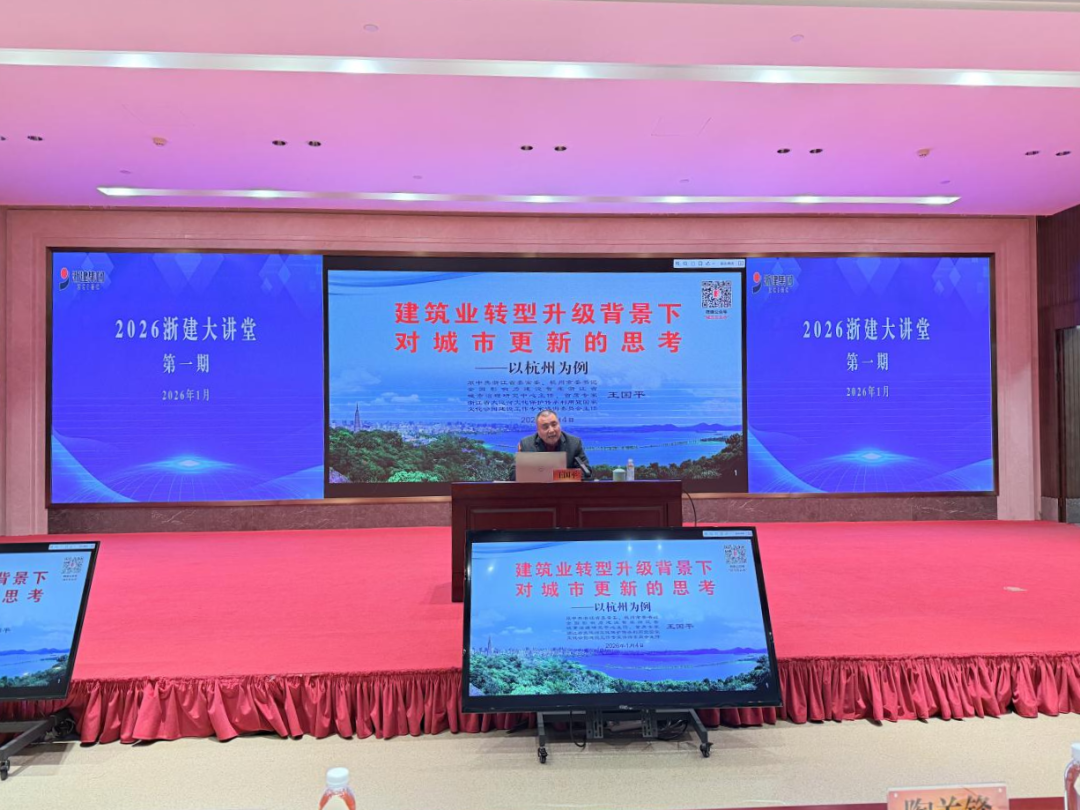 2026年1月4日,王国平应邀为浙建集团党委理论学习中心组学习会暨2026年第一期“浙建大讲堂”作题为“建筑业转型升级背景下对城市更新的思考——以杭州为例”专题讲座。
